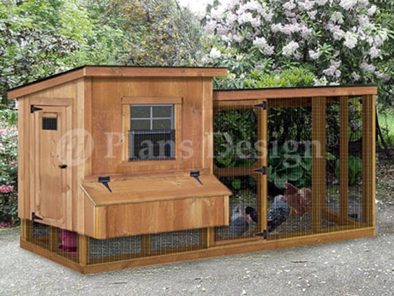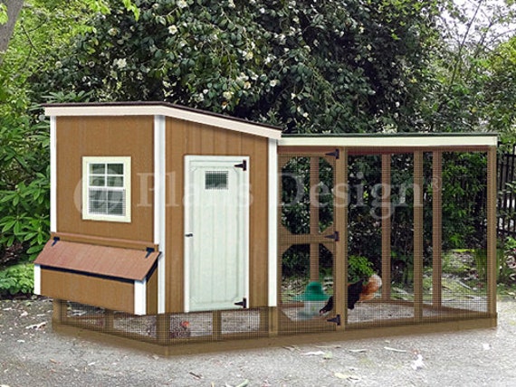 Backyard Chicken Coop Plans With Kennel Run Modern Lean To Etsy